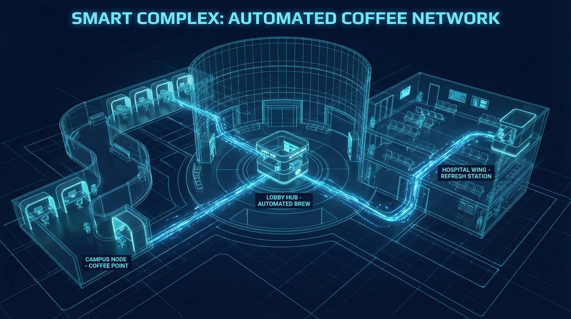 캠퍼스 내 학생·교직원 대상 24시간 로봇 무인커피 서비스. 높은 유동인구와 편의성으로 빠른 안착.